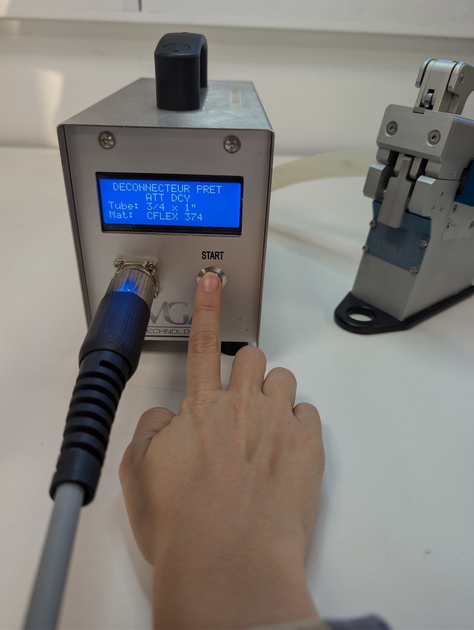 - Finalisation: The electromagnet releases the lock. After a visual inspection of the weld bead, the operator manually cuts the tube along the mark, thus completing the sterile disconnection of your single-use equipment.